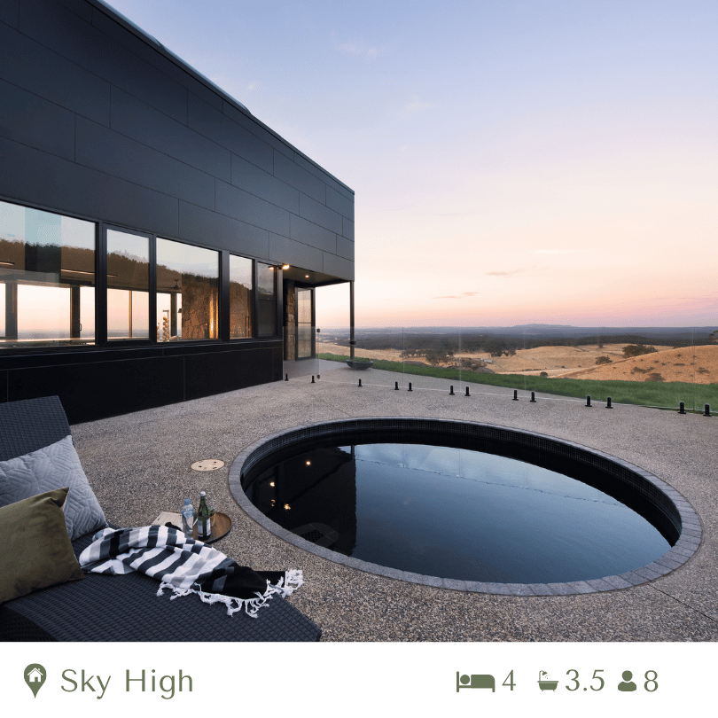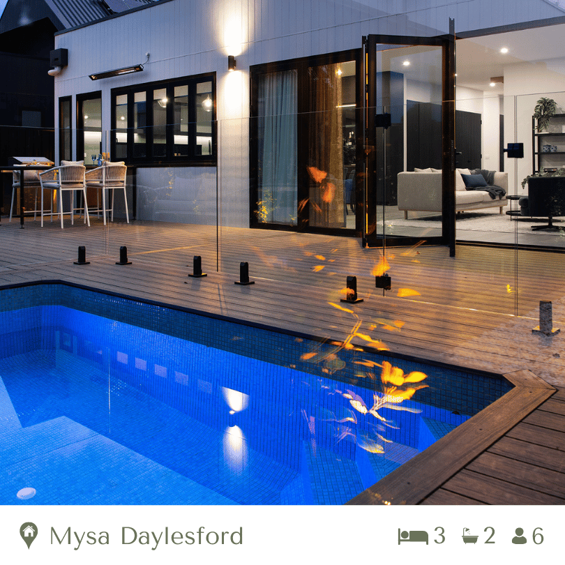 Scandi Collection – Some of our contemporary Scandinavian-inspired retreats, including Chalet Noir, Scandi Haus, Mysa Daylesford, and Lux on Max, have a private spa or pool.