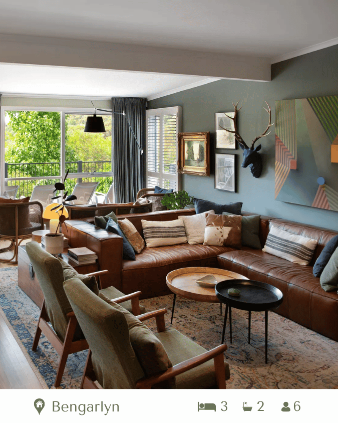 Bengarlyn – A visual masterpiece where bold garden design meets boutique luxury. Transformed from a miners cottage, Bengarlyn is a retreat bursting with colour, eclectic art, and curated character. Plus, your furry companions are welcome too! View Bengarlyn