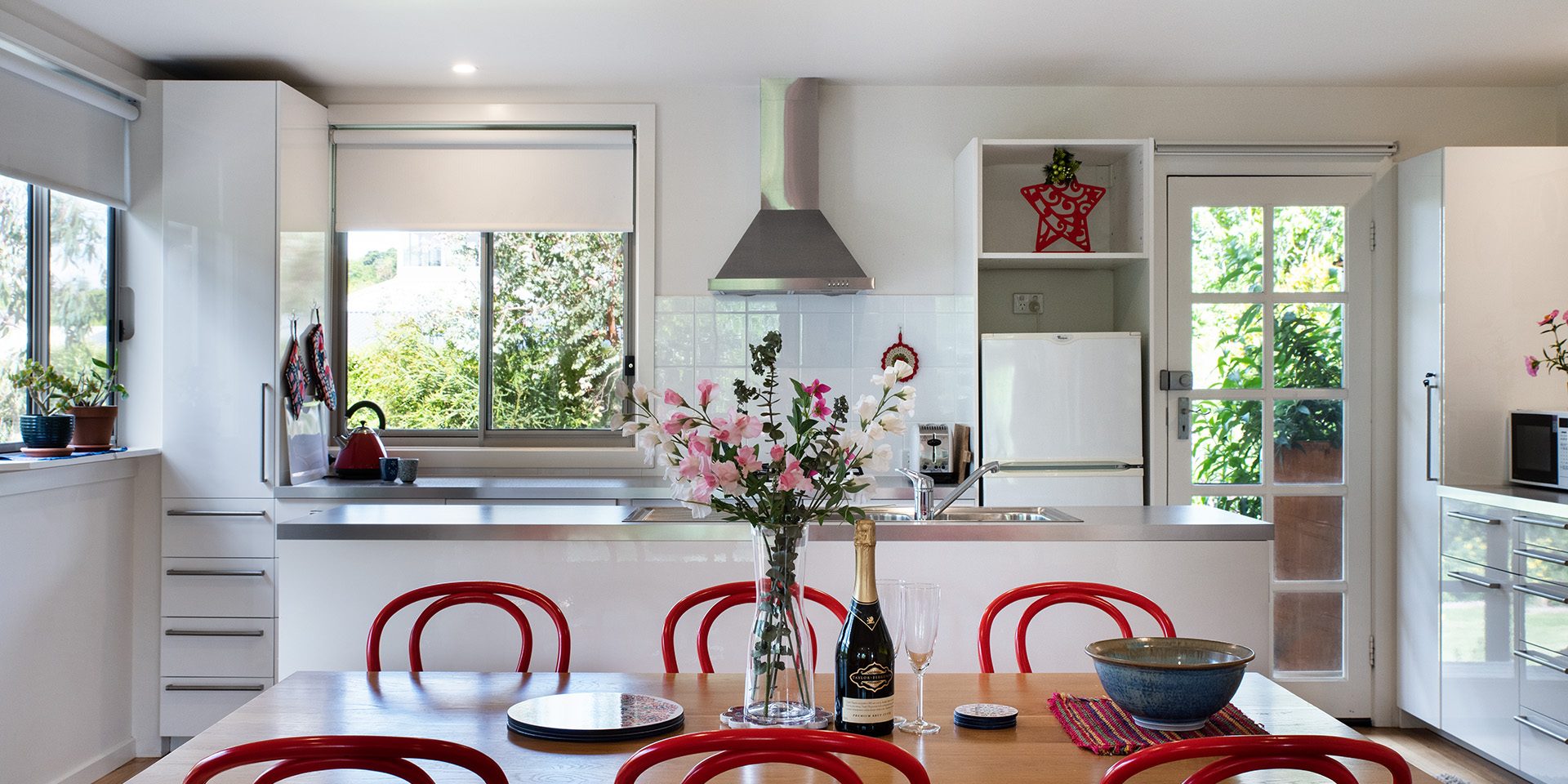 Giraffe Manor is located in the very heart of Daylesford, directly opposite its sister property Clementine. Set in a stunning garden paradise, it enjoys spectacular views to the exotic trees of Wombat Hill. An eclectic collection of art; paintings, prints, photographs and sculpture, as well as an extensive range of classical music CDs, provide intriguing interest to this light filled, spacious property, which is described by some as a ‘happy house’. Check out our sister property Clementine also on Millar St.