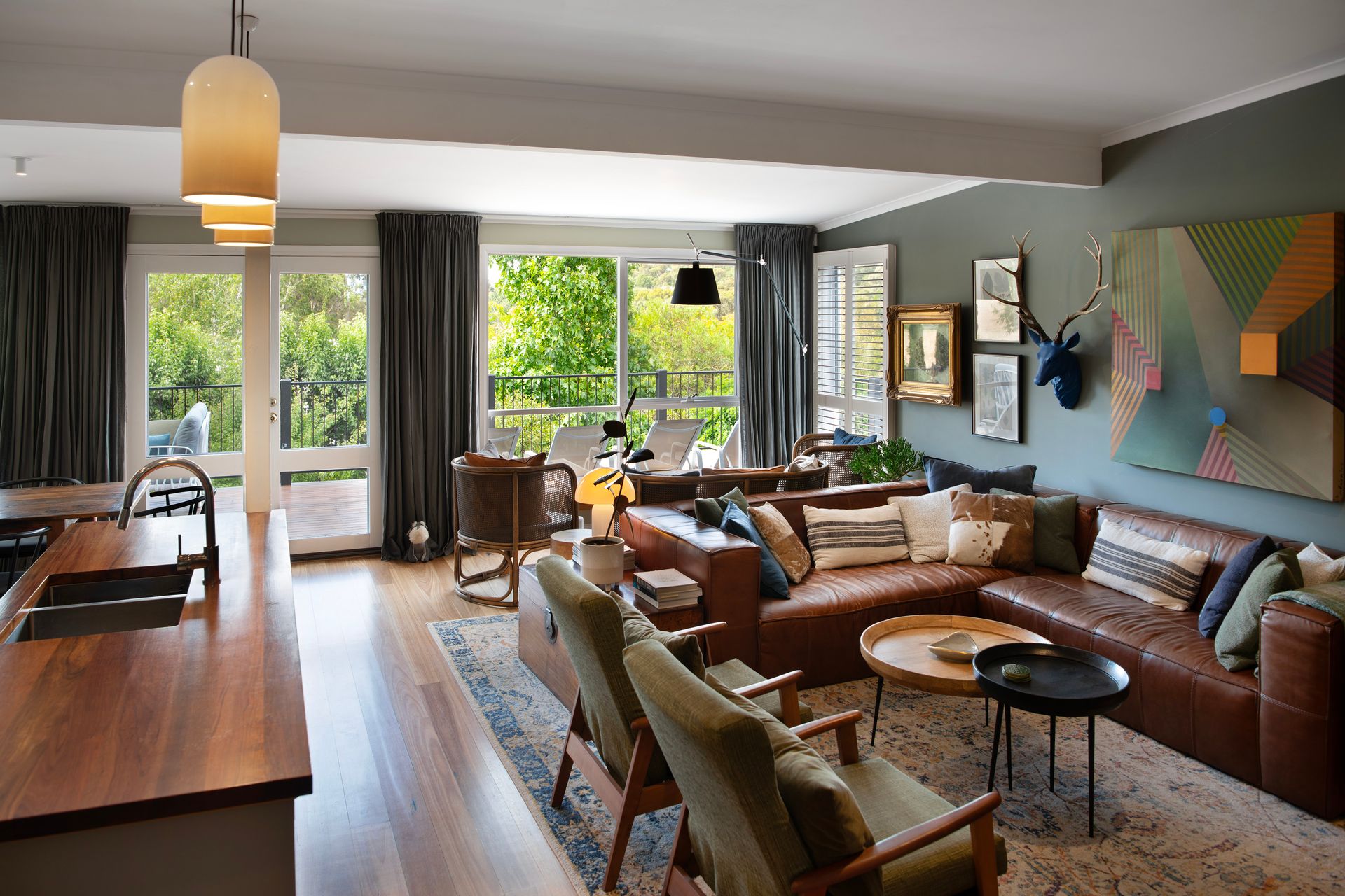 Centrally positioned in the heart of Daylesford, this sumptuously styled home is a visual masterpiece. Bursting with colour, bold art and eclectic design, it reflects the owners’ deep love of the region and their desire to create an unforgettable space for guests.