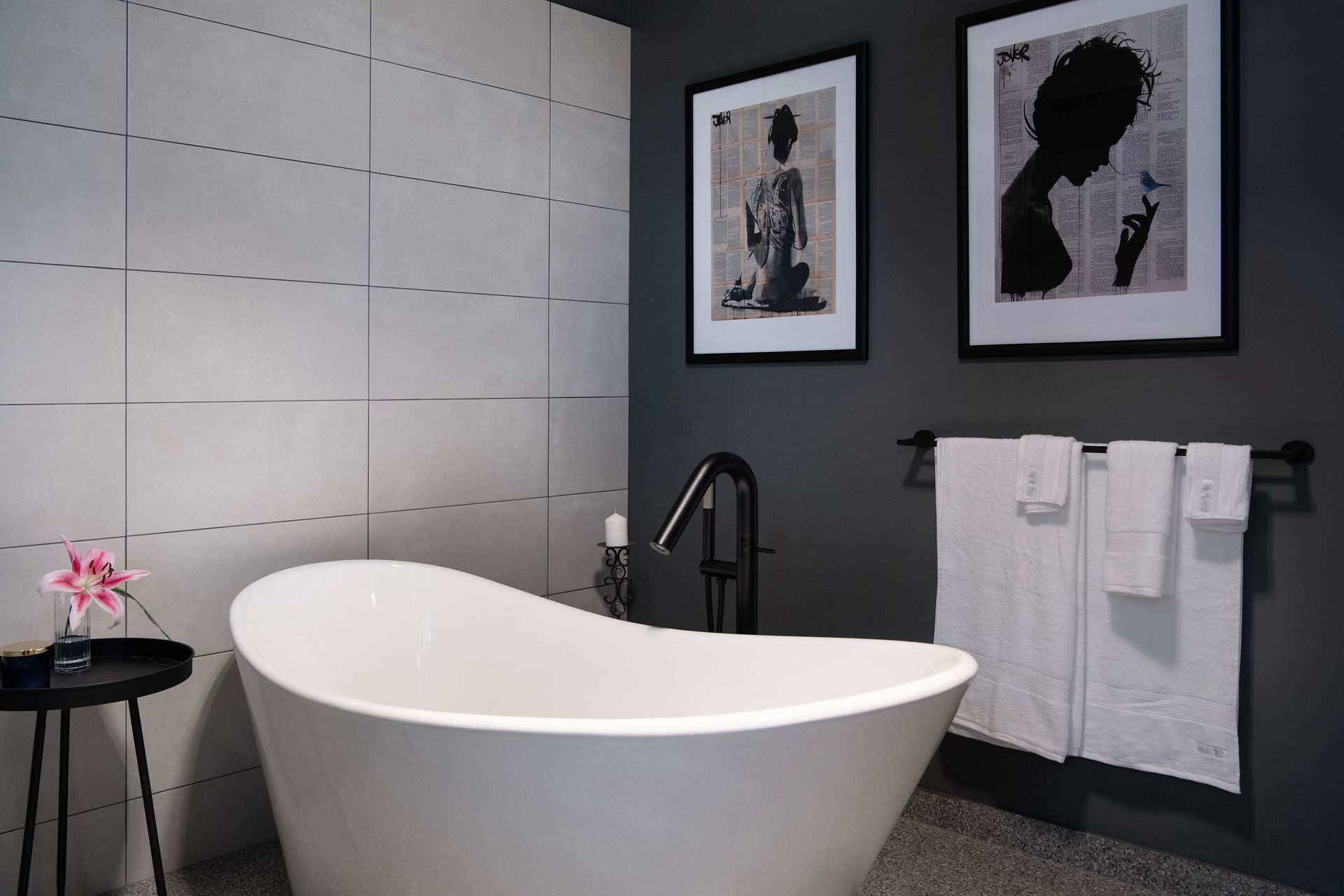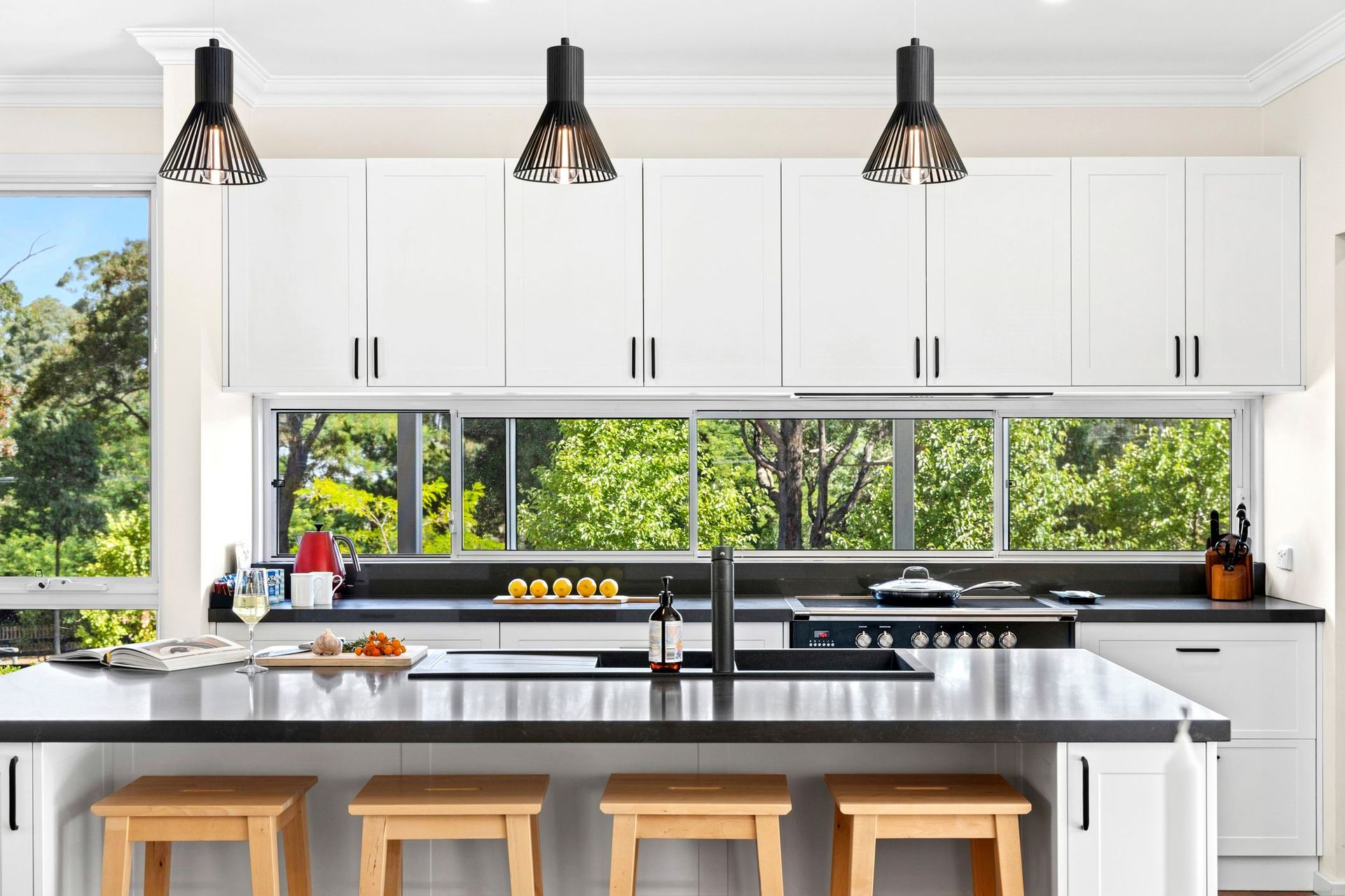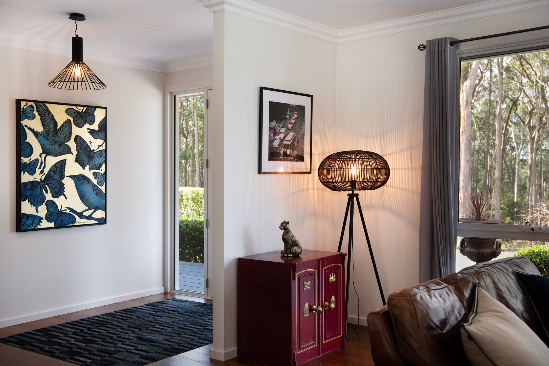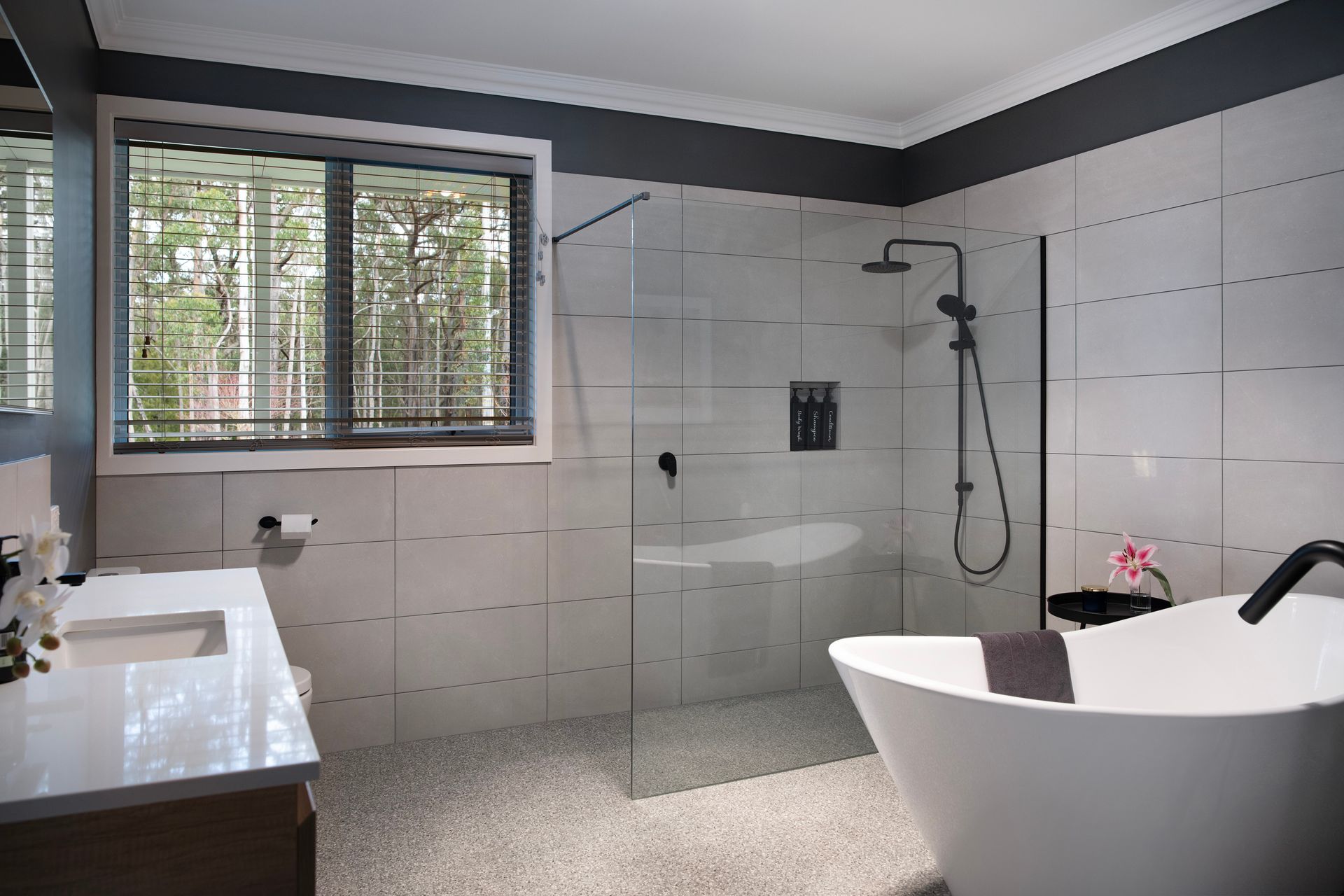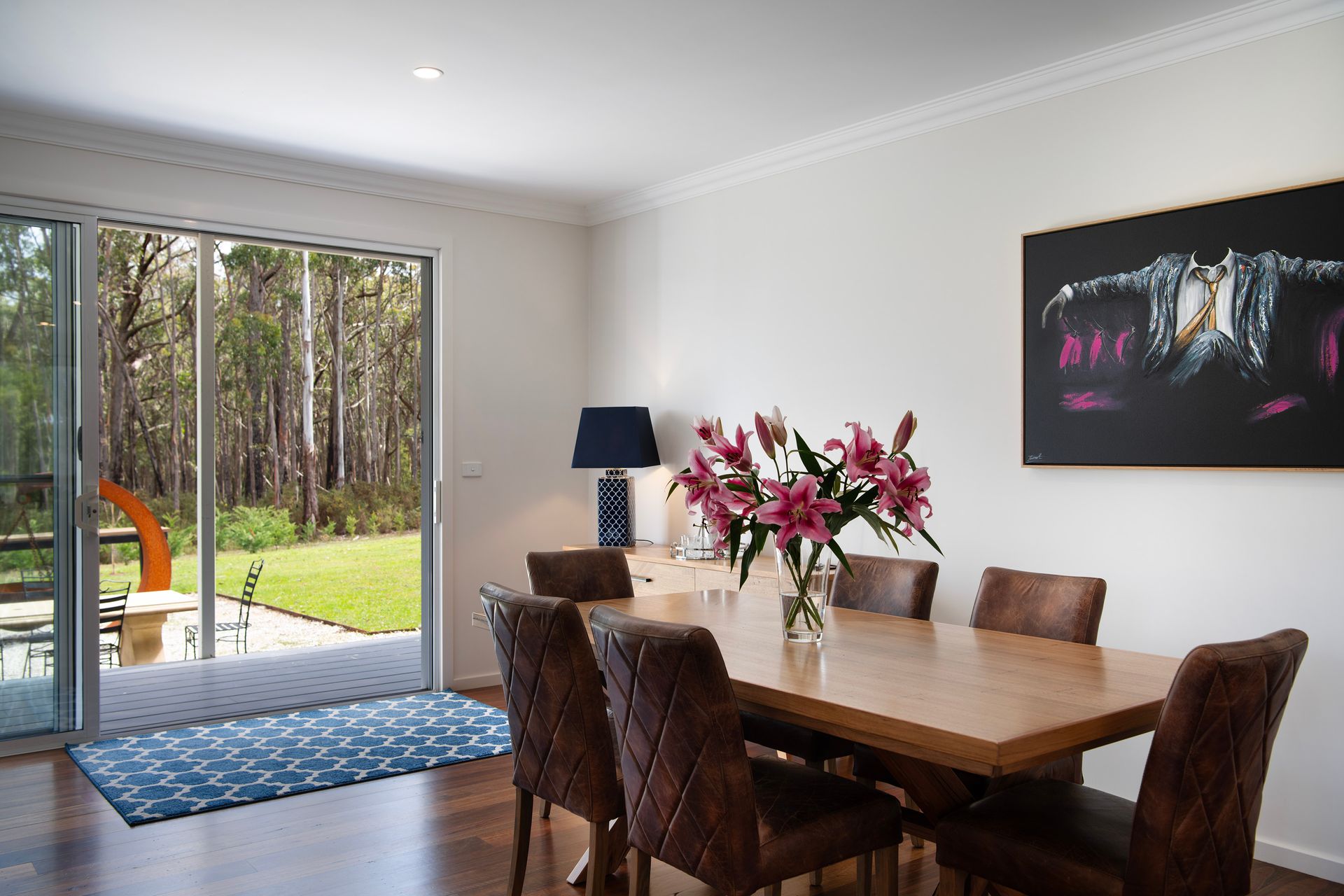 The central bathroom invites relaxation with its deep soak bath. Outside, the property really steps it up—multiple alfresco entertaining zones invite long lunches, sunset drinks, or simply wandering into the forest for a moment of stillness.
