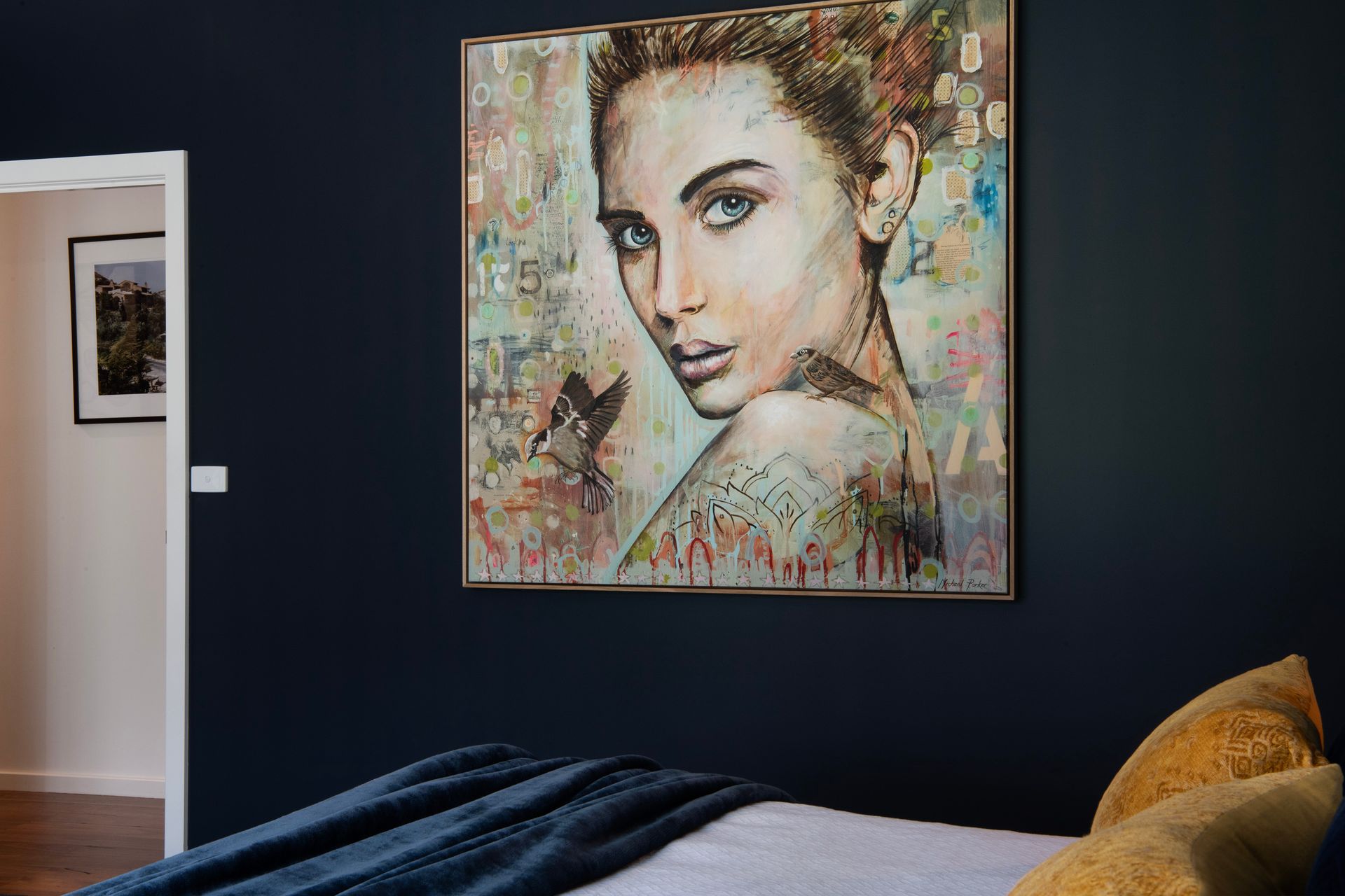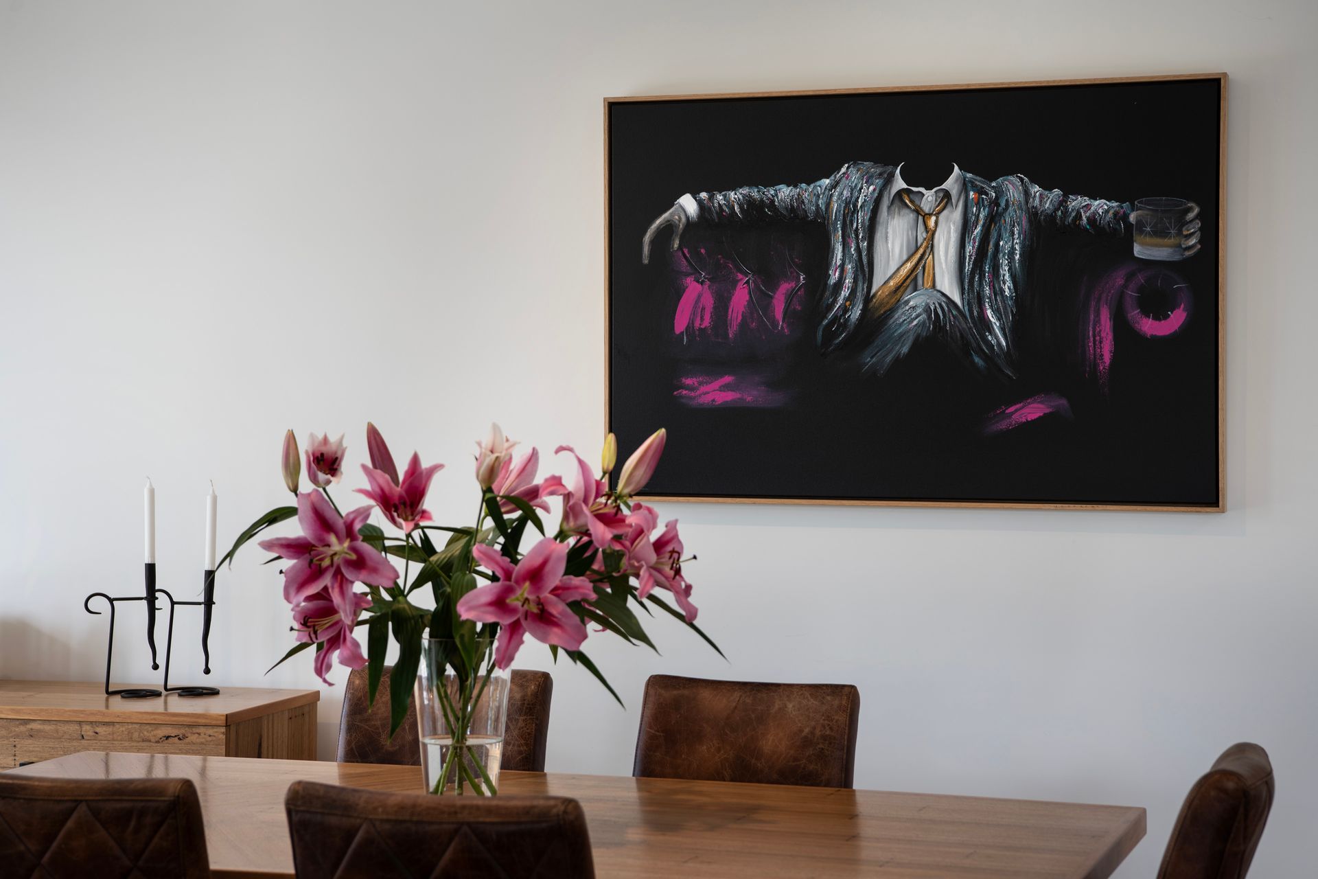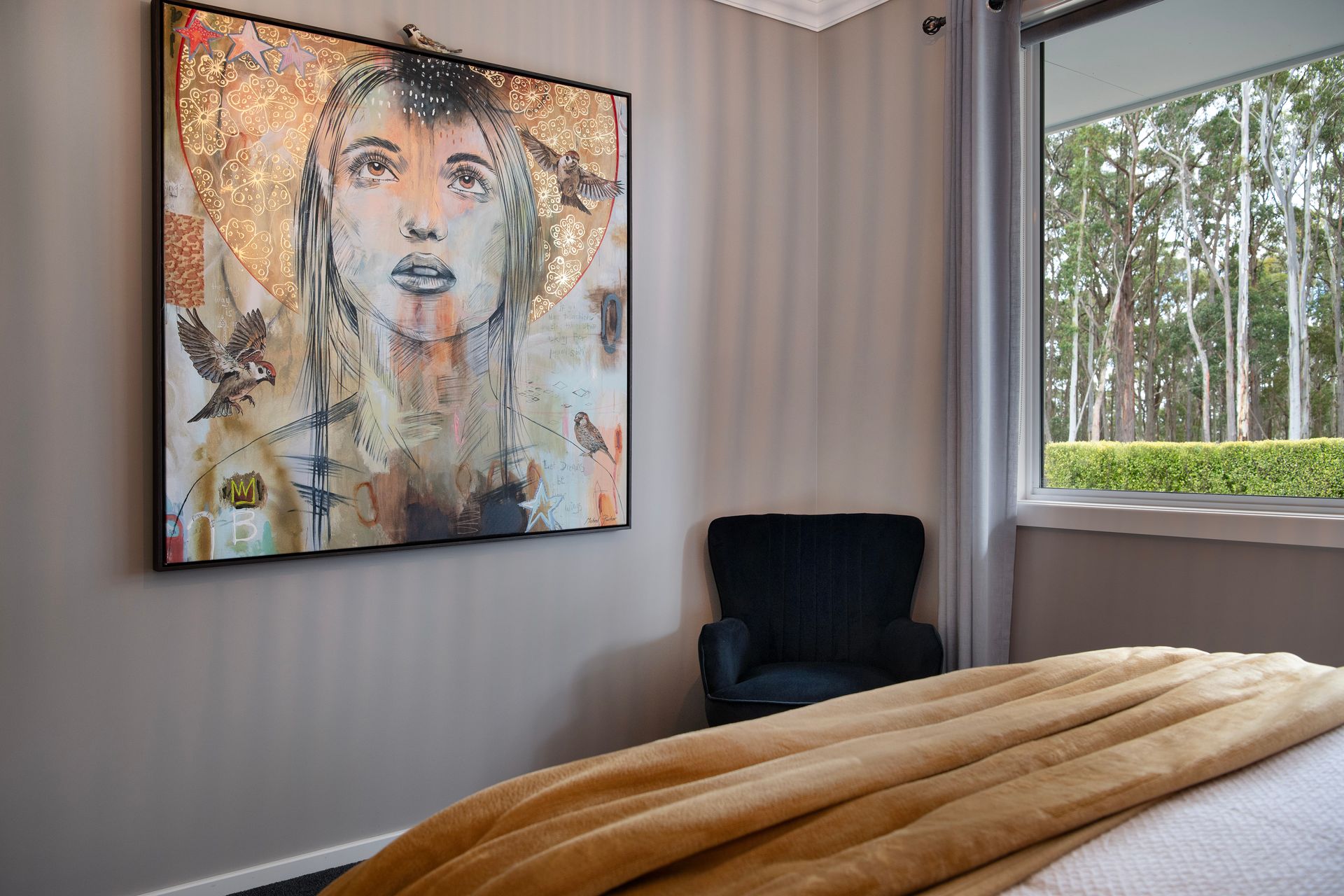 Step inside to a spacious open-plan living and dining area designed for connection and comfort. Gather around the dining table for eight, sink into the leather sofa by the crackling wood fire, and toast the moment with a chilled glass of white or a vibrant Aperol Spritz. Just off the lounge, a cozy single bedroom offers a quiet nook for solo travellers or children. Down the hallway, discover two queen bedrooms and a luxurious master suite with a king bed, ensuite, and its own TV. Each room is thoughtfully styled with plush bedding and curated local artwork.