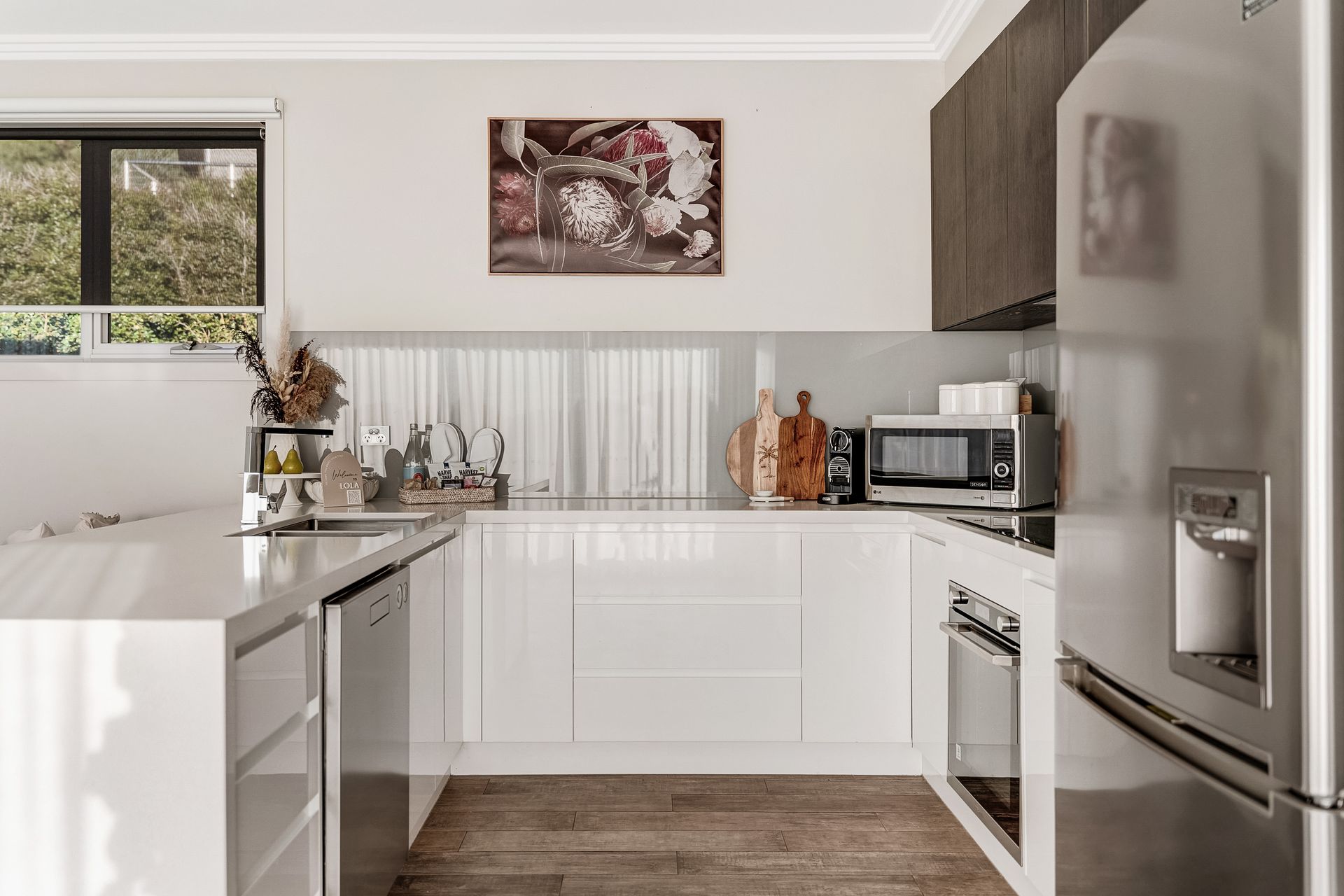 Inside, Lola features a modern kitchen with high-quality appliances and the electric fire in the entertainment room. This inviting space also includes a spa bath, wall-mounted TV, and a lounge area, ideal for unwinding in comfort. Both bedrooms offer tranquil outdoor views, plush carpets, contemporary styling with luxurious beds. Bedroom one features a king bed, while bedroom two offers a king that can be split into two singles, providing flexible sleeping arrangements. EV charging also available.