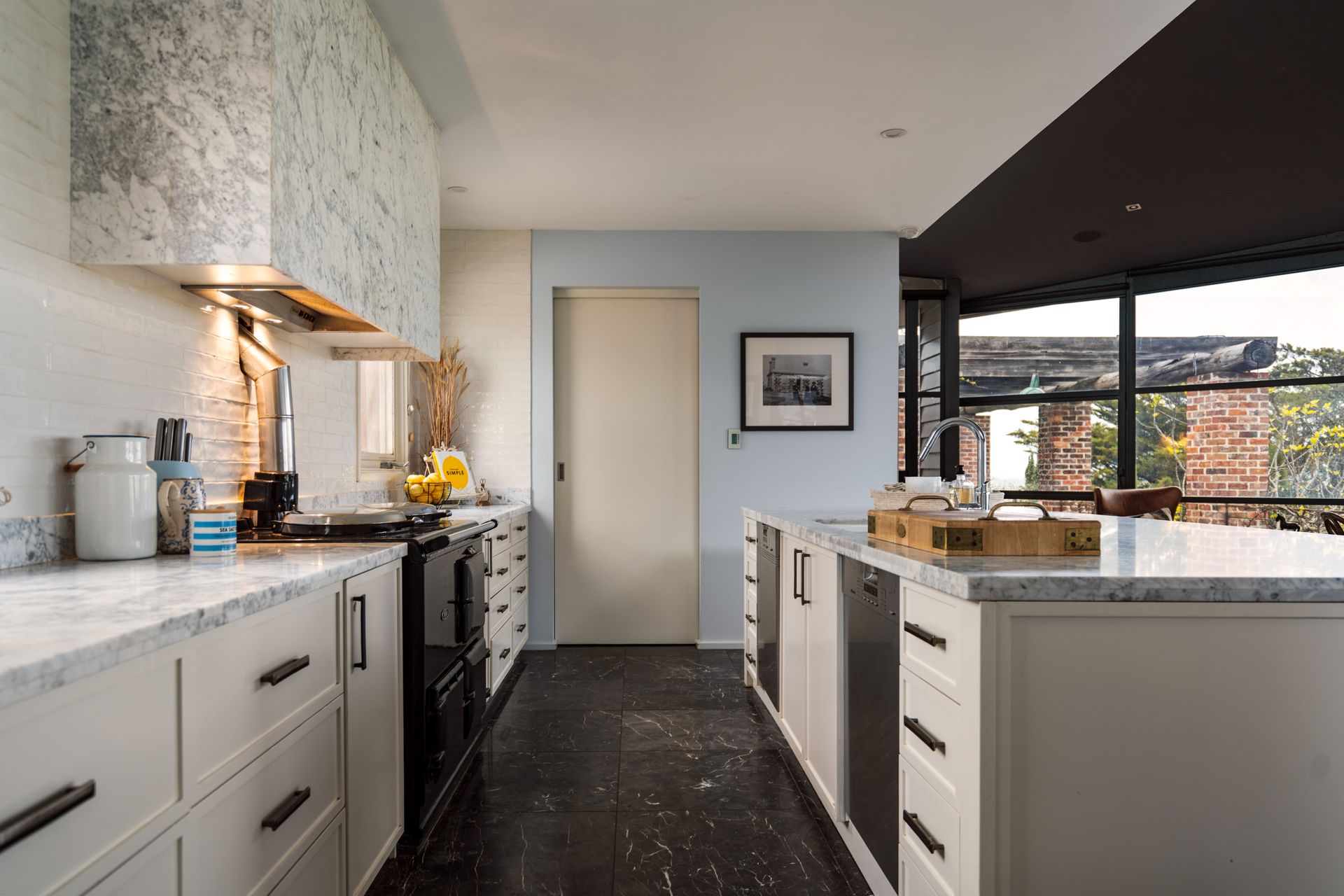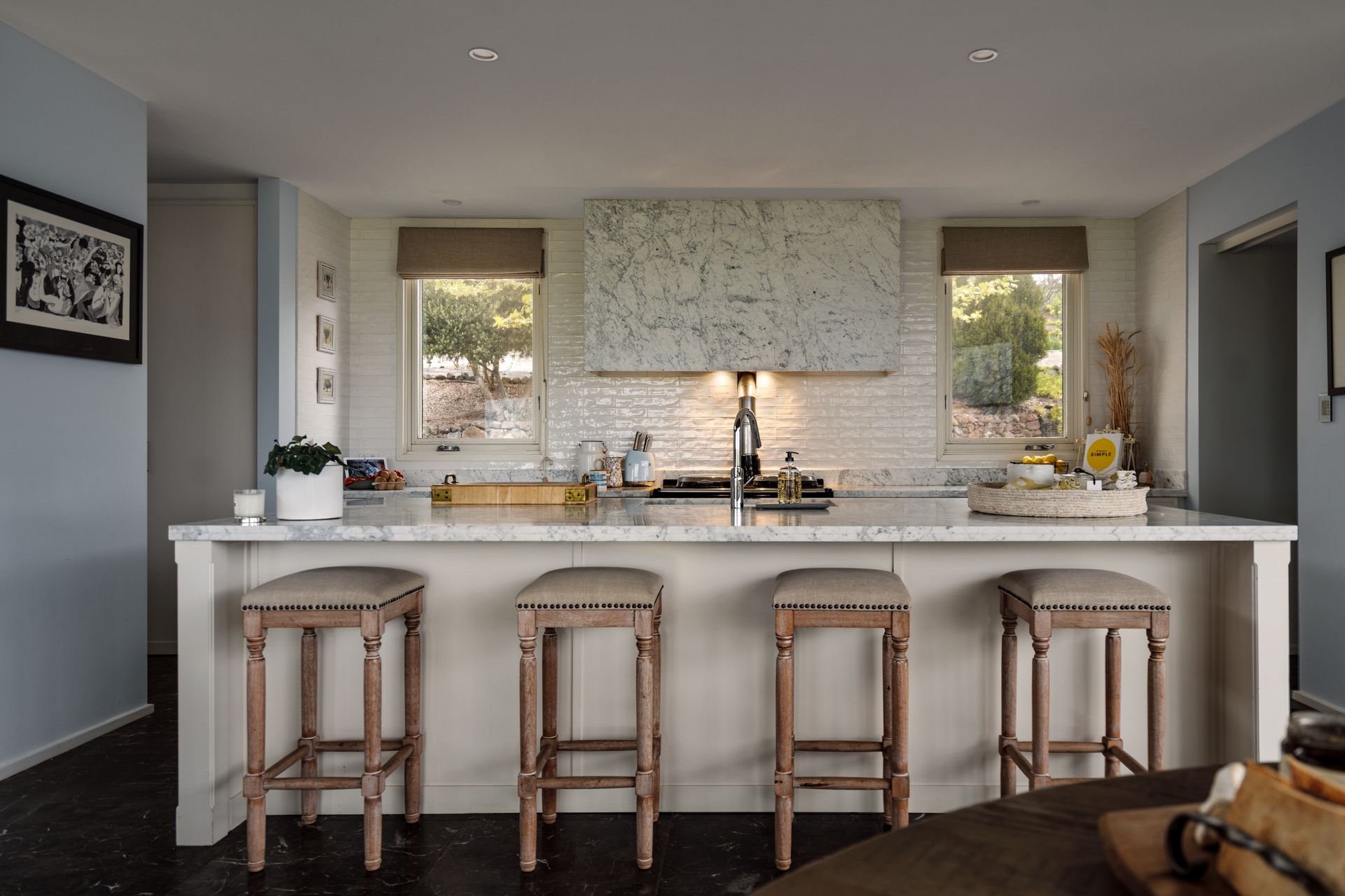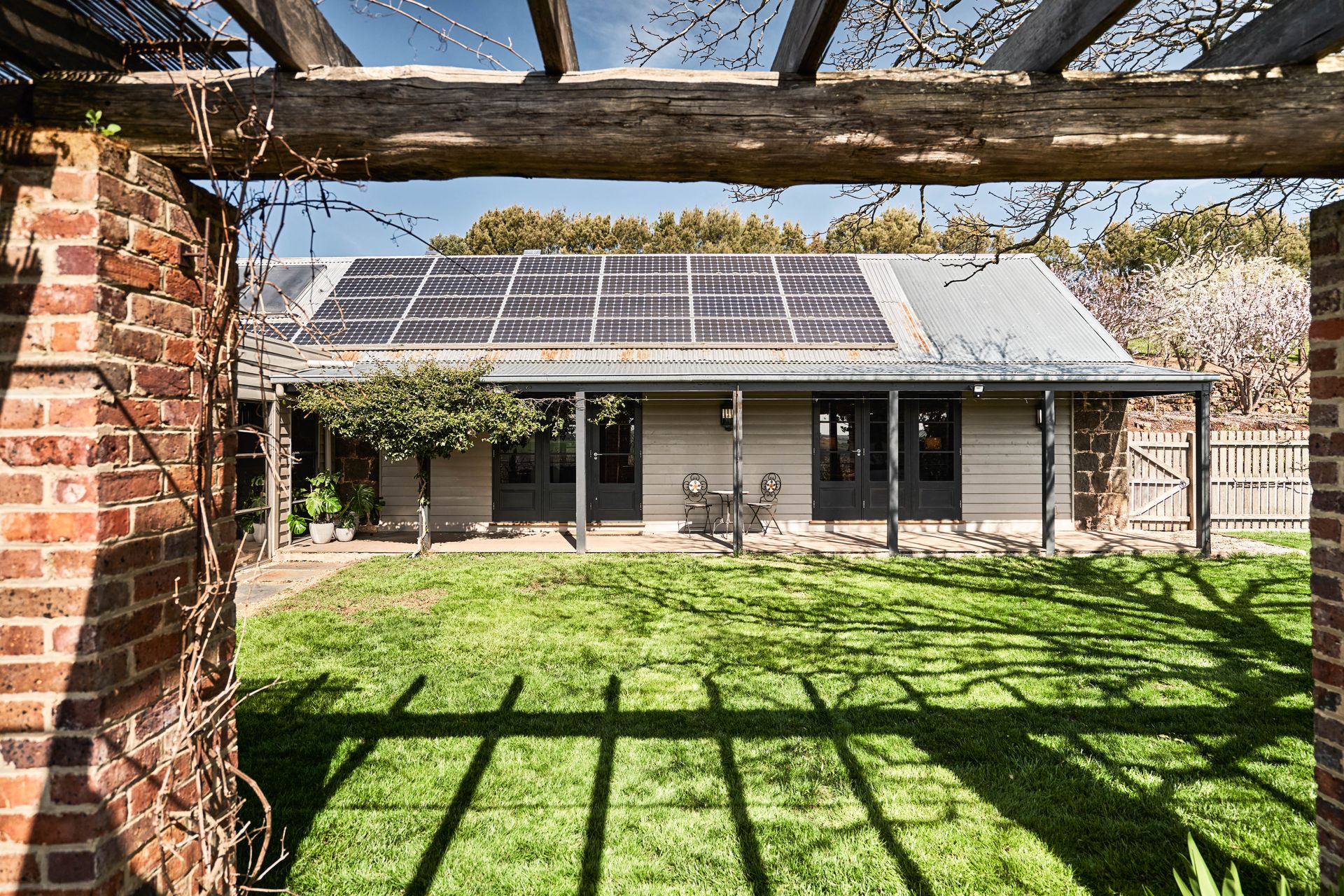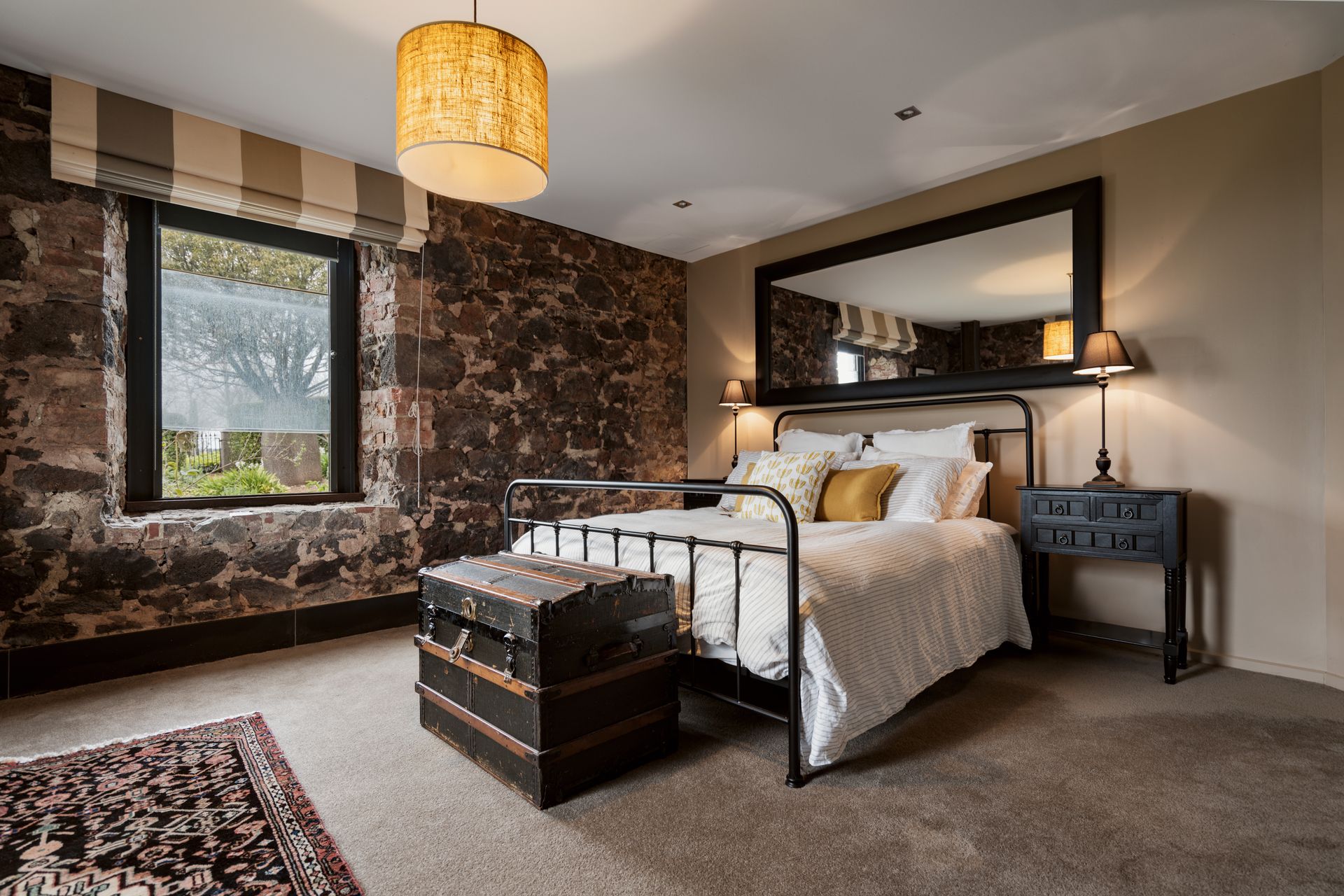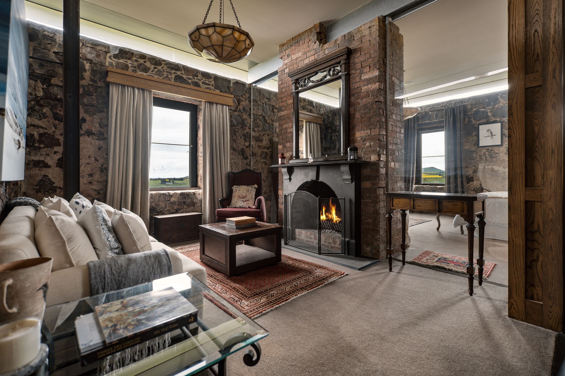 The 1850s original homestead fuses effortlessly into a contemporary masterpiece, preserving its heritage soul while introducing bold architectural flair and panoramic views across the plains. Original bluestone walls, aged hardwood lintels, and sashless windows preserve the 19th-century charm, while a striking industrial steel staircase and expansive glass panel above the stone wall flood the interior with natural light beneath a soaring metal roof. The entertainer’s kitchen features an Aga oven, two Miele ovens, dual dishwashers, and a gas cooktop. The principal suite offers views to Mt Kooroocheang, with a private balcony, ensuite, den, and study. Two generous guest bedrooms share a spa bathroom and lounge. The self-contained barn apartment has the fourth bedroom and includes a lounge, bathroom, and kitchenette.